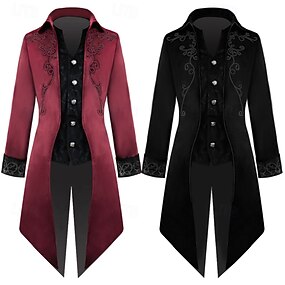 Casaco Vampiro Retro Vintage Punk Gótico Medieval Renaissance Steampunk Jaqueta Casaco de Trangulação Roupas Exteriores Masculinas Ebenezer Scrooge Elf Renda Jacquard Fantasia Festa Máscara