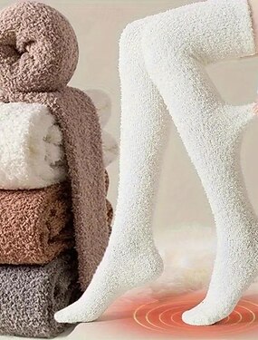 2/4 pares de meias de inverno femininas em fleece coral – grossas, sem fiapos, meias quentinhas até o joelho, perfeitas para usar no chão ou na neve. Macias e aconchegantes para dias de neve.