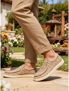 sapatos masculinos bege casuais com cadarço, cabedal em malha respirável e sola flexível para uso diário, escritório e viagens
