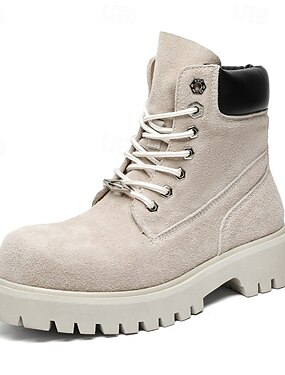 Botas de trabalho masculinas de camurça cáqui com sola robusta e forro interno macio, botas leves e casuais para atividades ao ar livre, para uso no outono e inverno