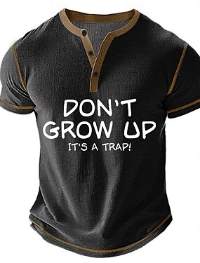 Camiseta Henley Masculina Engraçada de Manga Curta com a Citação 'Não Cresça É uma Armadilha!' - Humor de Estilo de Vida