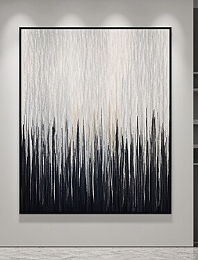 Arte de parede em tela feita à mão, pintura em blocos de cores preto e branco, decoração de arte de parede moderna, arte minimalista, pintura abstrata de formas geométricas.