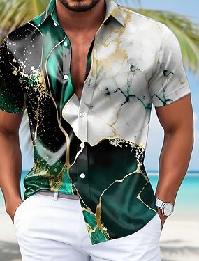Homens Geométrica Mármore Arte abstrata Camisa Social camisa de verão camisa de botão Manga Curta Moda Casual Ao ar livre Férias Dia a Dia Verão Primavera Aberto para a Lateral Impressão 3D camisas