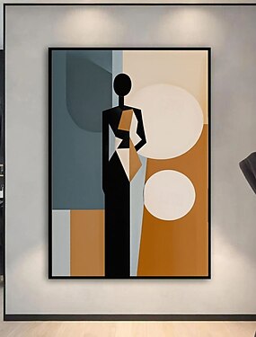 Arte abstrata de parede em tela com tema de cowboy do oeste americano, arte original de cowboy, retrato elegante de homem e mulher em tela, pintura sem rosto, decoração para casa, arte wabi-sabi.