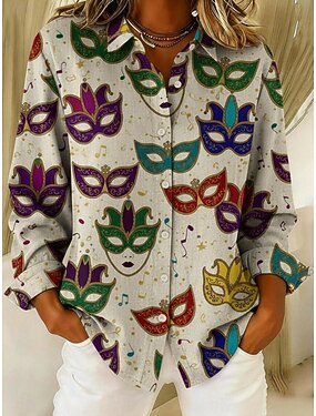 Carnaval Mulheres Camisa Social Botões Imprimir Gráfico Elegante Vintage à moda Manga Longa Colarinho de Camisa Tops regulares Diário Trabalho Feriado Cinzento Verão Primavera Outono