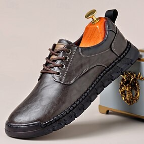 Sapatos casuais masculinos marrons, cabedal respirável com cadarço, sola confortável e com bom suporte, perfeitos para o escritório, ocasiões casuais e uso diário.