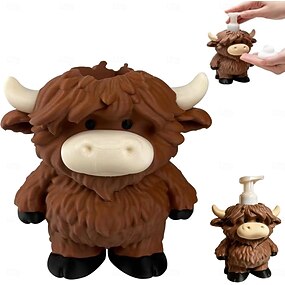 Dispensador de sabonete em formato de vaca das Terras Altas, adorável frasco de sabonete líquido em formato de vaca das Terras Altas para as mãos. &Gel de banho, frasco de vaca recarregável com bomba