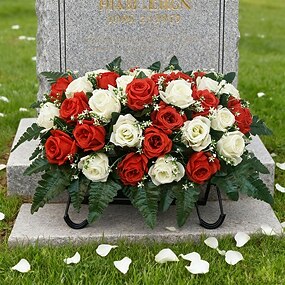 Arranjo floral artificial para lápide de cemitério, ideal para o Dia da Memória. Possui rosas artificiais, perfeitas para decoração de túmulos. As cores não desbotam e o arranjo é fácil de instalar.