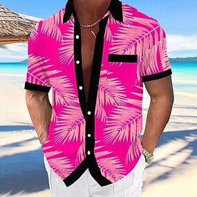 Homens Folha de palmeira Plantas Tropicais Camisa Social Camisa havaiana camisa de botão Manga Curta Havaiana Férias Roupa de Praia Verão Primavera Aberto para a Lateral Impressão 3D camisas de