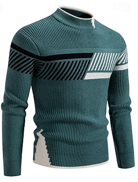 Masculino Pulôver Tricotar Padrão Côr Misturada Listras e xadrez Arredondar Casual / Diário Roupa Outono & inverno Azul Marinho Escuro Verde Escuro S M L
