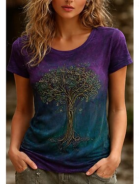 Mulheres Camiseta Imprimir Gráfico Abstrato Vintage à moda Clássico Manga Curta Gola Redonda Tops regulares Casual Diário Final de semana Roxo Verão Primavera