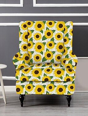 Capa protetora para poltrona de orelhas com estampa floral, listrada e geométrica em poliéster elástico, ideal para sala de estar, sala de jantar e escritório.