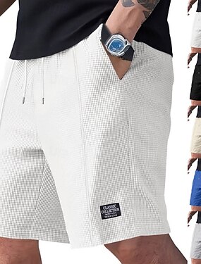 Homens Calções Waffle Calção Shorts casuais Com Cordão Bolsos Tecido Conforto Respirável Comprimento do joelho Diário Casa Ao ar livre Férias Roupa de rua Preto Branco Micro-Elástica