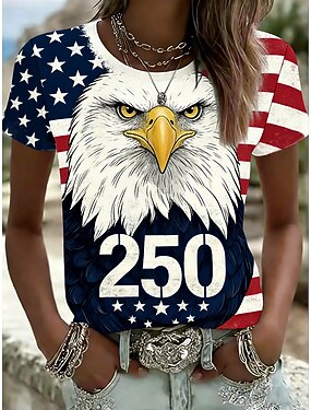 Dia da Independência Aniversário Americano Patriótico Camiseta Feminina Estampa Gráfica Bandeira Vintage Estilosa Clássica Manga Curta Gola Redonda Gola em V Tops Regulares Impressão Diária Verão