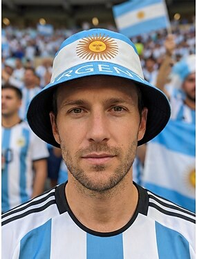 Chapéu bucket masculino reversível em poliéster, estampa da bandeira da Argentina, chapéu leve para torcedores de futebol, ideal para dias de jogo, esportes casuais e atividades ao ar livre.