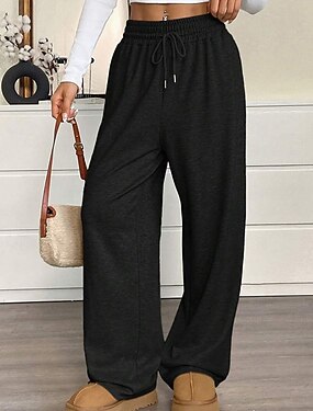 Mulheres Perna larga chinês Férias Roupa de rua Básico Comprimento total Cintura Média Tecido Com Cordão Bolsos Cintura elástica Confortável Respirável Micro-Elástica Com Stretch Diário Ao ar livre