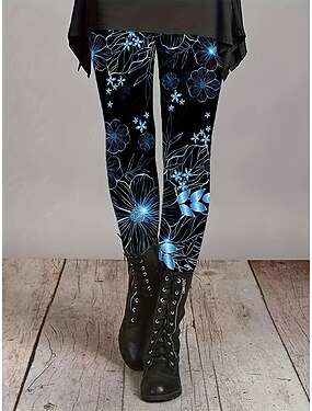 Mulheres Leggings Férias Vintage Moda Comprimento total Cintura Alta Floral Gráfico Estampado Macio Respirável Com Stretch Diário Férias Rua Azul Outono Inverno Fino