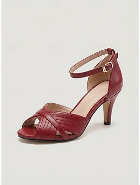 Sapatos de salto alto femininos vintage vermelho vinho dos anos 50 com bico aberto - sapatos retrô de salto alto com tira ajustável no tornozelo, ideais para festas de coquetel, eventos formais e trabalho.
