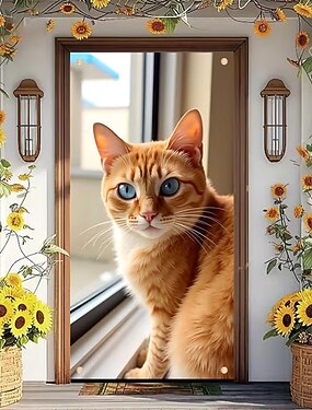 Ano Novo Pôsteres Tampa da porta Banners externos Gato Estilo bonito 3D De Festa Dorm Sala de Adolescentes Dormitório da faculdade Quarto de fraternidade da caverna masculina Fundos de fotografia