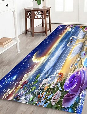 Tapete de corredor com estampa de flores e plantas, em tecido de flanela, para decoração de casa, tapete antiderrapante e macio para porta de entrada e banheiro.