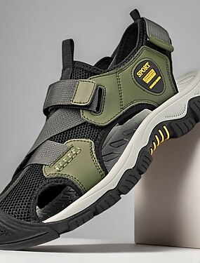 Sandálias esportivas masculinas em couro sintético e tela com fecho de velcro – calçado atlético com tira ajustável para atividades ao ar livre, caminhadas e aventuras do dia a dia.