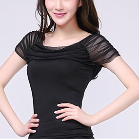 Camisa de Mulher de Manga Longa Decote Redondo Tunic Ombre Casual Tops Regulares Uso Diário Estampa Preto e Branco Primavera Outono Pré-Outono