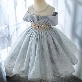 Infantil Para Meninas Vestido de festa Côr Sólida Manga Curta Espetáculo Casamento Com Transparência Manga Princesa Princesa Doce Com Transparência Longuette Vestido da bainha Vestido De Tule Vestido