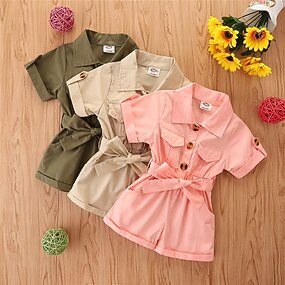 Dia da Criança Para Meninas 3D Cor Sólida Jardineira & Macacão Verão Básico Algodão Bébé Escola