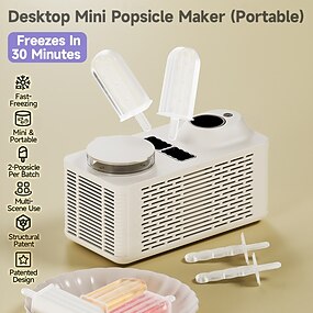 Mini máquina de picolé portátil de mesa com congelamento rápido, congela em 30 minutos, design para 2 picolés por vez para guloseimas caseiras saudáveis, compacta para casa, escritório, trailer e