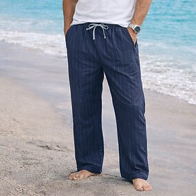 Homens Calças de linho Calças Calça verão Calças largas Com Cordão Cintura elástica Perna reta Listrado Conforto Respirável Comprimento total Casual Diário Feriado Moda Estilo Clássico Azul Preto