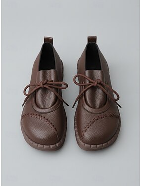 Sapatilhas femininas marrons de couro com amarração e modelagem ampla – calçados macios e confortáveis para caminhada, com sola flexível antiderrapante, ideais para o dia a dia, viagens e uso