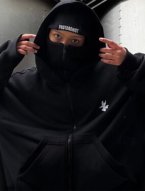 Moletom masculino com capuz e zíper frontal, estilo balaclava, nas cores preto, branco e vermelho. Modelo liso com bolso, ideal para esportes, atividades ao ar livre, uso diário, férias, em poliéster. Perfeito para streetwear, uso básico e casual, ideal p