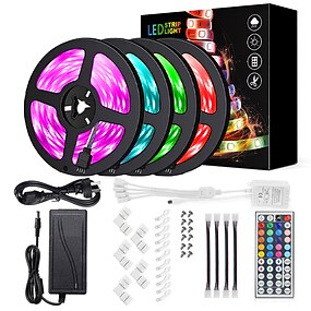 kwb kit de faixa de luz à prova d'água 20m (4 * 5m) 5050 10mm rgb 600 luzes de tira leds com kit de controle remoto 44key ir e 12v 10a eu nos au uk fonte de alimentação com suporte de montagem