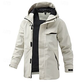 Homens Casaco exterior Capa de chuva Jaqueta de Trilha Diário Caminhada A Prova de Vento Impermeável Bolsos Primavera Outono Tecido Moda Clássico Com Capuz Padrão Preto Vermelho Laranja Verde Azul