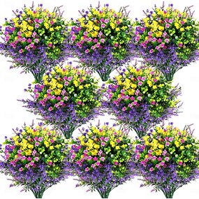 10 flores artificiais para exterior, decorações de flores de plástico, simulação de margaridas, buquês, arbustos de flores artificiais resistentes a raios ultravioleta, casa, hotel, escritório, festa