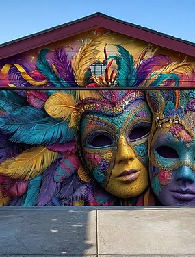 Carnaval Tampa da porta da garagem Grande pendurado Máscara Pena Luxo 3D Vibrante De Festa Exterior Fundos de fotografia Porta de Entrada Baile de Máscara Decoração de casa