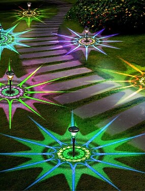 Conjunto de 4 luminárias solares de jardim com mudança de cor, à prova d'água IP65, ideais para paisagismo externo, quintal, gramado, pátio e entrada de garagem.
