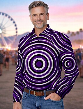 Retro Vintage Anos 70 Camisa Camisa Aloha Manga Comprida Hippie Geométrica Fantasia Homens Baile de Máscaras Festival de Música Festa Roupa Diária Adulto Camisa