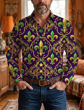 Retro Vintage Anos 70 Camisa Camisa Aloha Manga Comprida Hippie Geométrica Fantasia Homens Baile de Máscaras Festival de Música Festa Roupa Diária Adulto Camisa