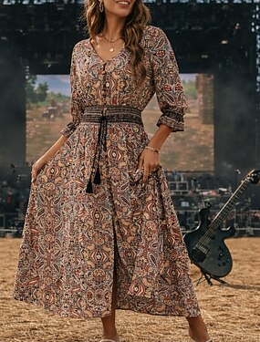 Retro Vintage Anos 50 Rockabilly Meio-dia Vestido swing Vestido Flare Ajuste e alargamento Floral Fantasia Mulheres Baile de Máscaras Férias Casual Festa Temática Retro Adulto Vestido Primavera Verão