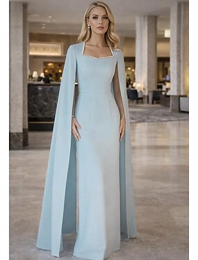 Tubinho Longo Vestido de baile com capa Vestidos de noite Vestido formal Elegante Estilo Celebridade Sem Manga Decote Quadrado Festa de Jardim Casamento Crepe Esticado com Pregas