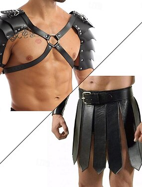 Retro Vintage Punk e gótico Medieval Armas e Armaduras Kilts utilitários escoceses chemise Guerreiro Cavalheiro Viking Fantasia Homens Viking Fantasia Baile de Máscaras Espetáculo Palco Mascarilha