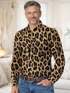 Retro Vintage Anos 70 Camisa Camisa Aloha Manga Comprida Hippie Leopardo Fantasia Homens Baile de Máscaras Festival de Música Festa Roupa Diária Adulto Camisa