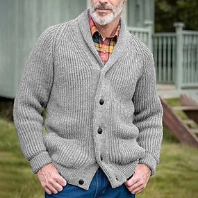 Homens Sueter Cardigan Vestido Suéter Cardigã Chunky suéter cortado Cabo Tricotar Padrão Abotoar Tecido Lapela Vintage Aquecimento Casual Roupa Diária Roupa Mangas Raglã Outono Inverno Preto Verde M