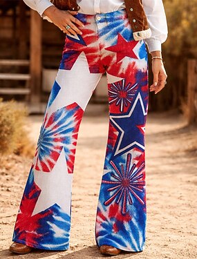 250º Aniversário EUA Retro Vintage Anos 70 Calças Calça boca de sino Hippie Discoteca Cintura Alta Fantasia Mulheres Baile de Máscaras 4 de julho Festa Dia da Independência Adulto Calças