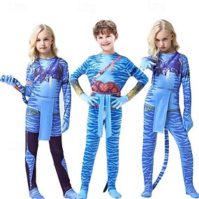 Macacão Zentai infantil Neytiri Jake, azul, para cosplay, fantasia para meninos e meninas, ideal para filmes, fantasias de Halloween e carnaval.