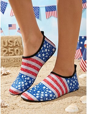 Sapatos aquáticos femininos comemorativos do 250º aniversário dos EUA – meias aquáticas patrióticas com a bandeira americana em vermelho e azul, ideais para praia, natação, surfe e piscina. &esportes