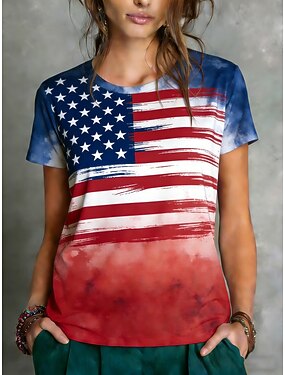 Dia da Independência Americana Mulheres Camiseta Imprimir Gráfico Bandeira à moda Clássico Casual Manga Curta Gola Redonda Tops regulares Casual Diário Branco Verão Primavera