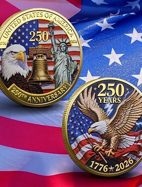 Moeda comemorativa do 250º aniversário dos EUA, moeda patriótica colecionável, águia &liberdade &Moeda comemorativa com design de bandeira, feita em metal resistente, lembrança histórica para