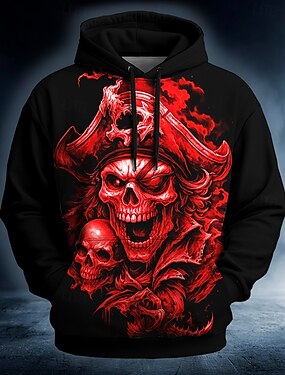 Homens Caveiras Pirata Moletons Moletom Punk Exagerado Góticas Manga Longa Gola Redonda Com Capuz Bandagem Streetwear Azul Céu Branco Vermelho Azul Verde Com Cordão Outono Inverno Designer S M L XL